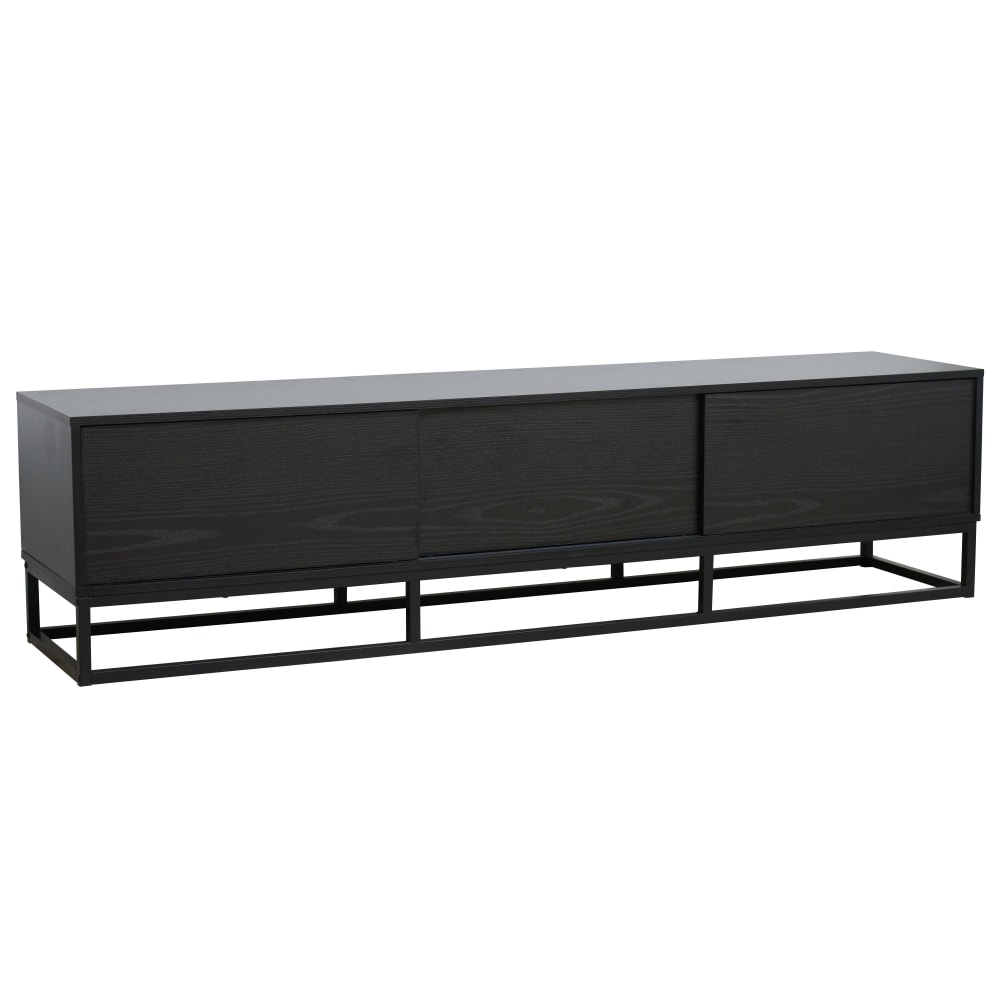 Hellin Meuble TV rétro en chêne 2 niches 2 portes L180 noir