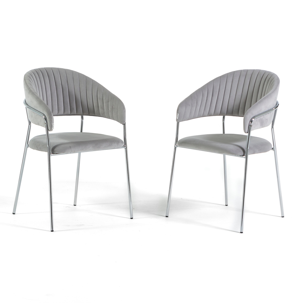 RATTATAN Set aus 2 Innenstühlen aus Samt, gepolstert, mit Metallfüßen, elegantes Design für Esszimmer, Küche oder Restaurant – Hellgrau/Silber – Lea
