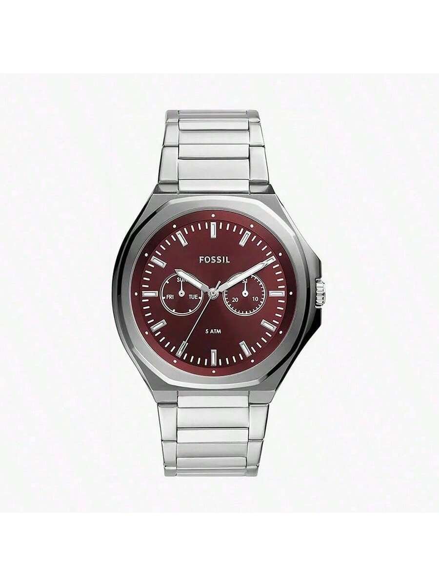 Fossil Men's Watch with Date & Day Display, 5ATM Water Resistant, Black Dial, Leather Strap, Business Retro Style BQ2807 wine