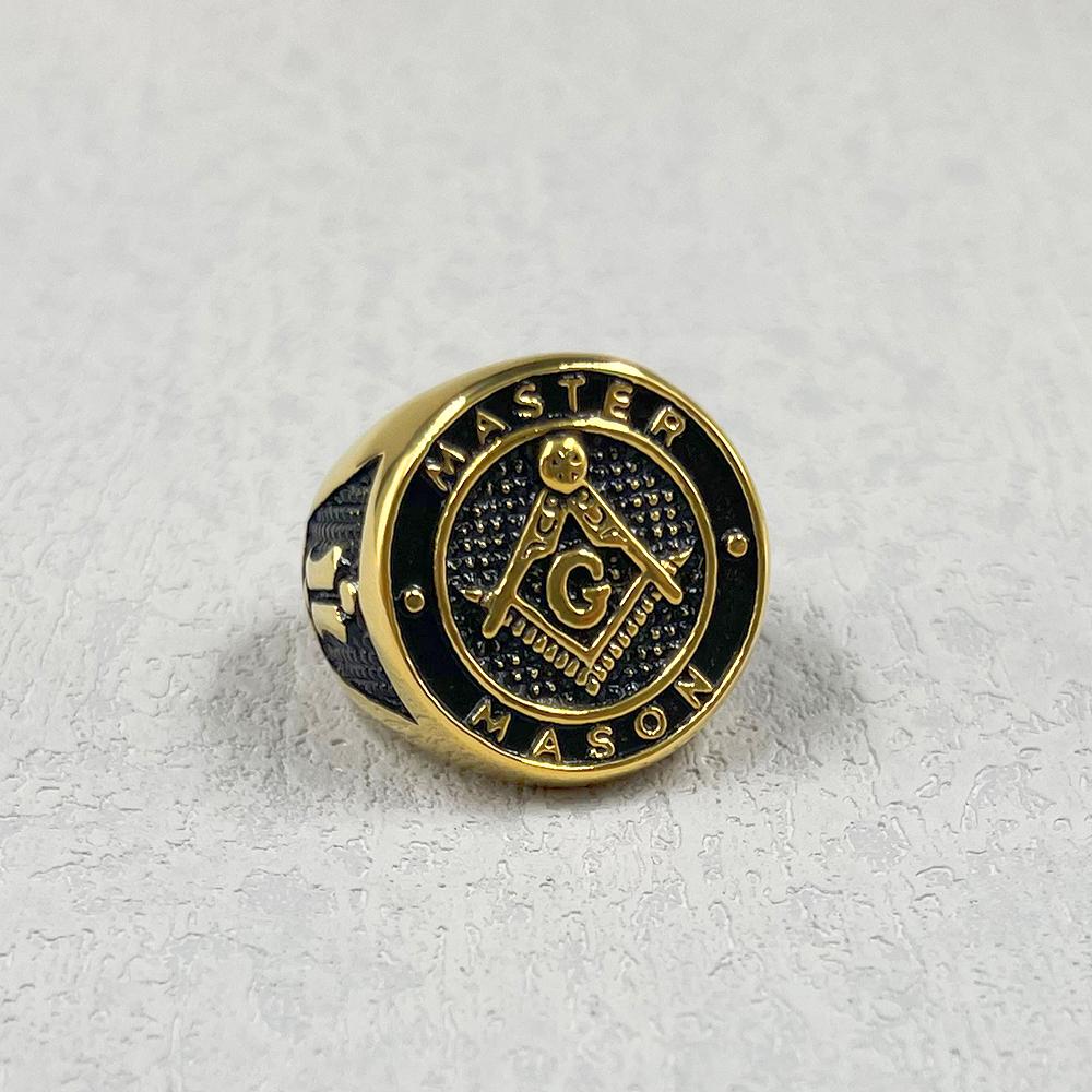 Frimurere Ring Gratis Murere 316L Rustfritt Stål med strass Frimureri Ring Frimurer Gullfarge For Menn AG Punk