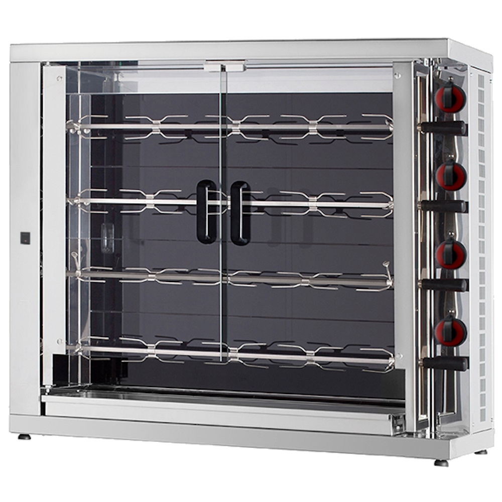 Vitrokeramik hähnchengrill mit licht. 4 schwerter = 20/24 hühner - 1100x450x970 mm - 16800 W 400/3V - 53204L42 Eurast