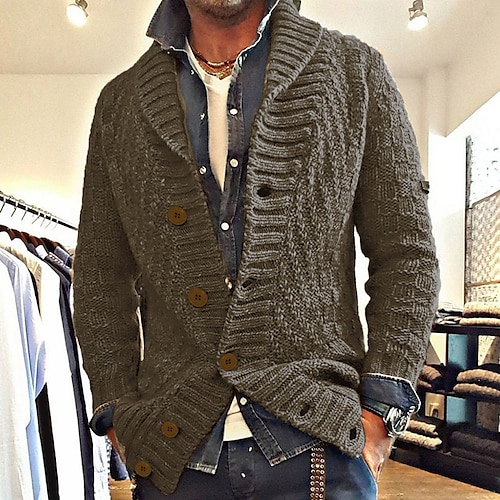 Per uomo Cardigan Maglione Corto Maglione a maglia A Coste Maglia Tunica Tasca Semplice Bavero Moda Classico Vacanza Abbigliamento quotidiano Abbigliamento Autunno Inverno Nero Blu marino S M L