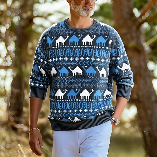 Per uomo Felpa Maglione di lana Maglione A Coste Maglia Top Regolari Lavorato a maglia Semplice Girocollo Moda Streetwear Abbigliamento quotidiano Uscire Abbigliamento Autunno Inverno Blu Cammello S