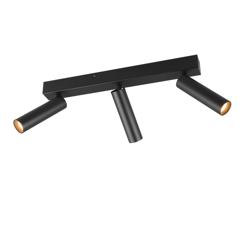 Barra LED 3 luci, metallo, nero opaco, 44x13x17,5 cm