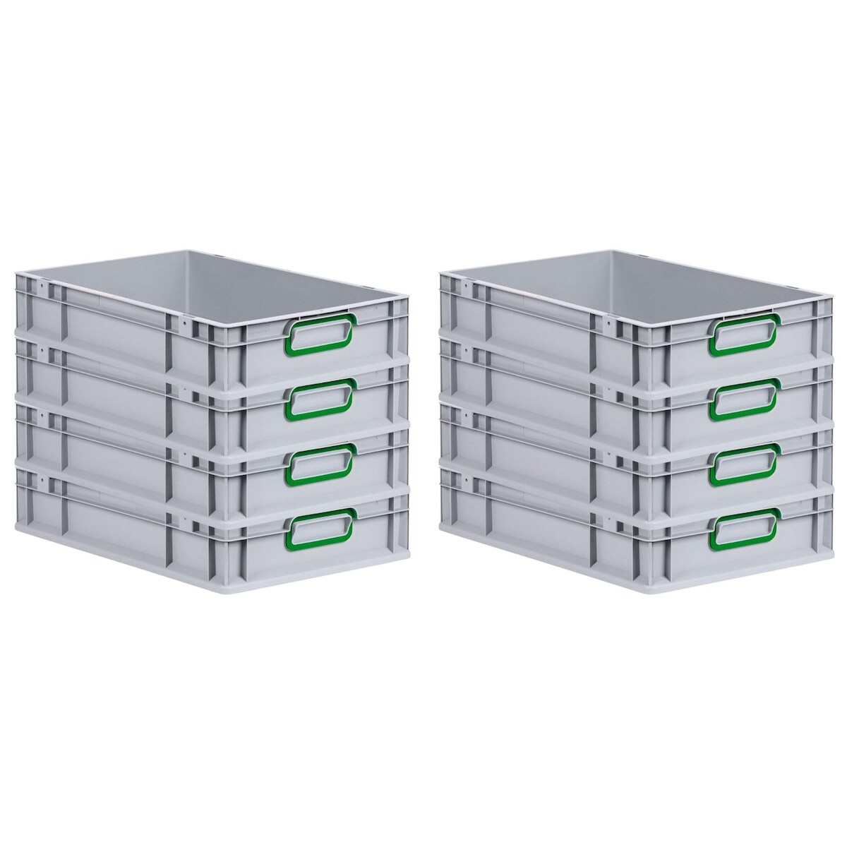 PROREGAL SuperSparSet 8x Eurobox NextGen Color, HxBxT 12x40x60cm, 23 Liter, Griffe grün zu, Grau, Eurobehälter, Box, Transportbehälter