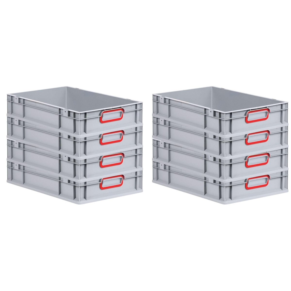 PROREGAL SuperSparSet 8x Eurobox NextGen Color, HxBxT 12x40x60cm, 23 Liter, Griffe rot zu, Grau, Eurobehälter, Box, Transportbehälter
