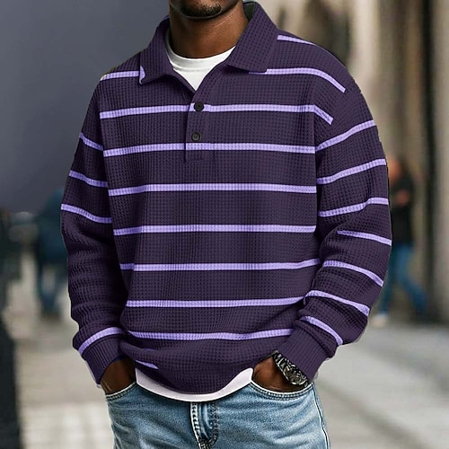 Per uomo Strisce orizzontali Magliette Polo a Nido d'Ape Polo da rugby Testurizzato Manica Lunga Magliette polo Bavero Abbigliamento Sportivo Casual Scuola Athleisure Abbigliamento quotidiano Stampa