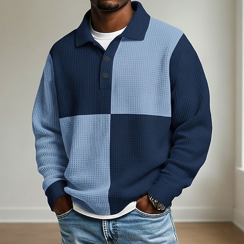Per uomo A righe Magliette Polo a Nido d'Ape Polo da rugby Manica Lunga Magliette polo Camicie con Colletto Casual Athleisure Abbigliamento quotidiano Bottoni Primavera Autunno Inverno Blu Bianco