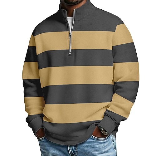 Per uomo A righe Polo da rugby Polo a maglia intrecciata Manica Lunga Magliette polo Camicie con Colletto Casual All'aperto Athleisure Stampa 3D Primavera Autunno Inverno Giallo Blu Marrone