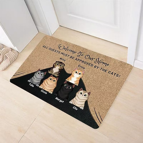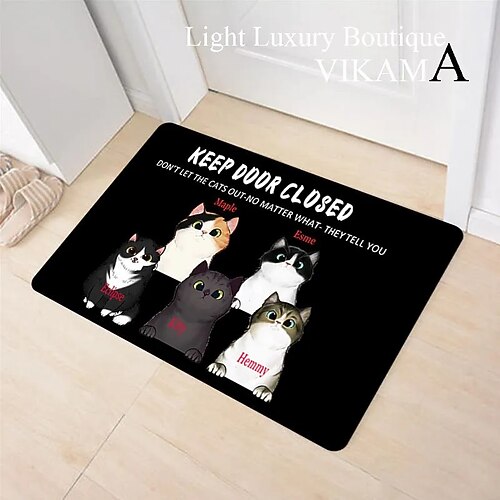 zerbino con simpatico motivo a gatto con cartoni animati, tappeto d'ingresso, resistente allo sporco, facile da pulire, tappetino per porta d'ingresso, corridoio, arredamento per interni.