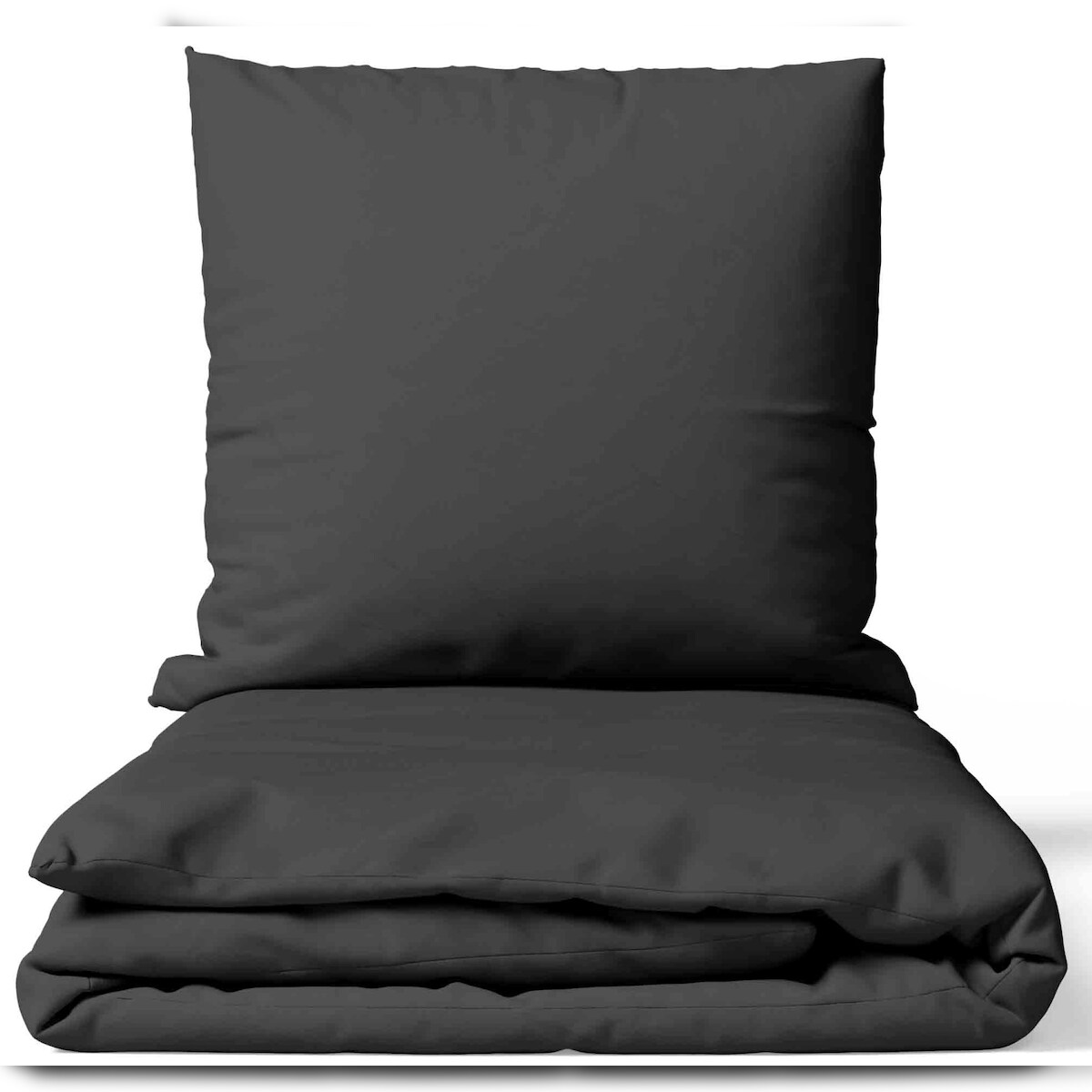 Leonado Vicenti Bettwäsche Baumwolle 135x200 + 80x80 cm Einfarbig Uni Anthrazit mit Reißverschluss