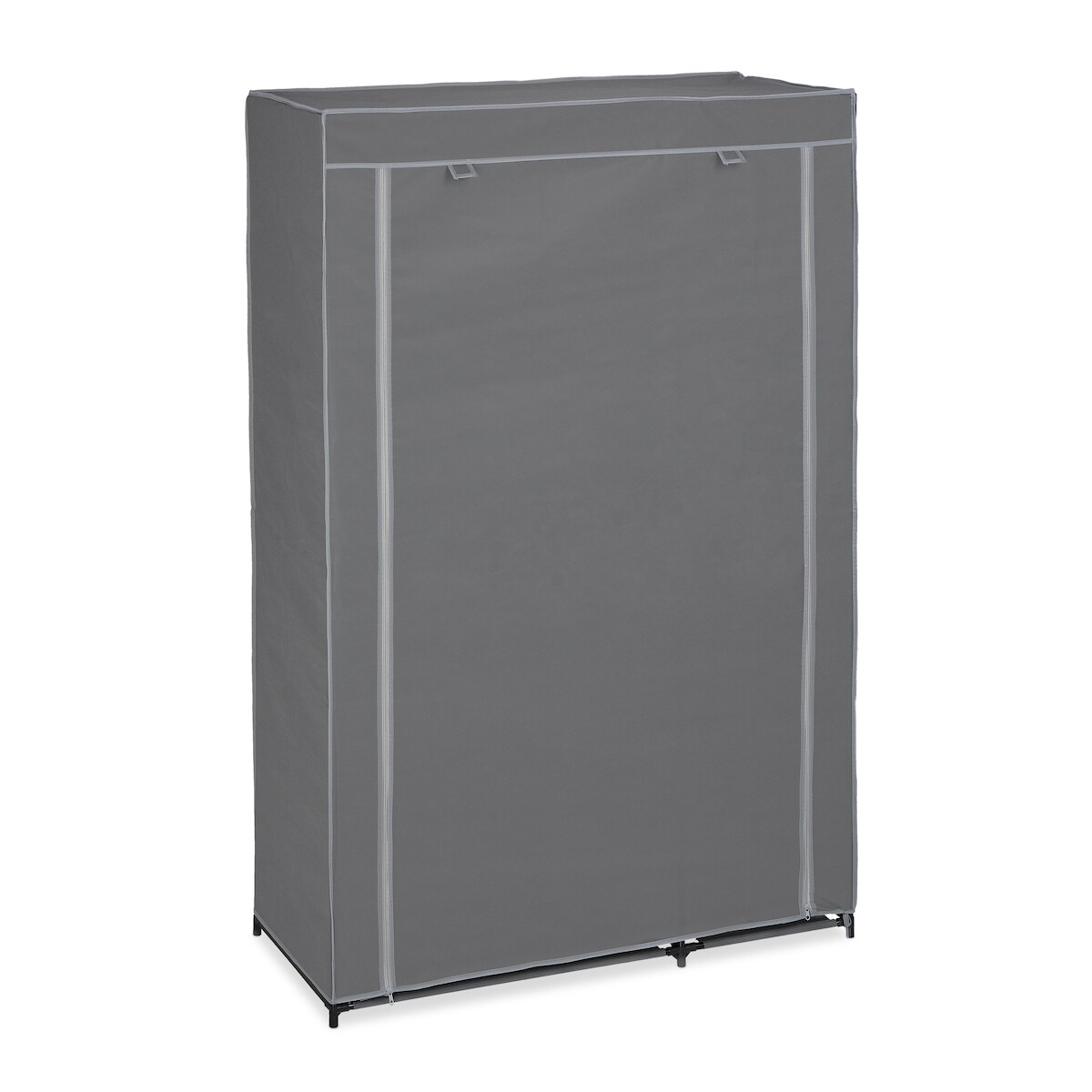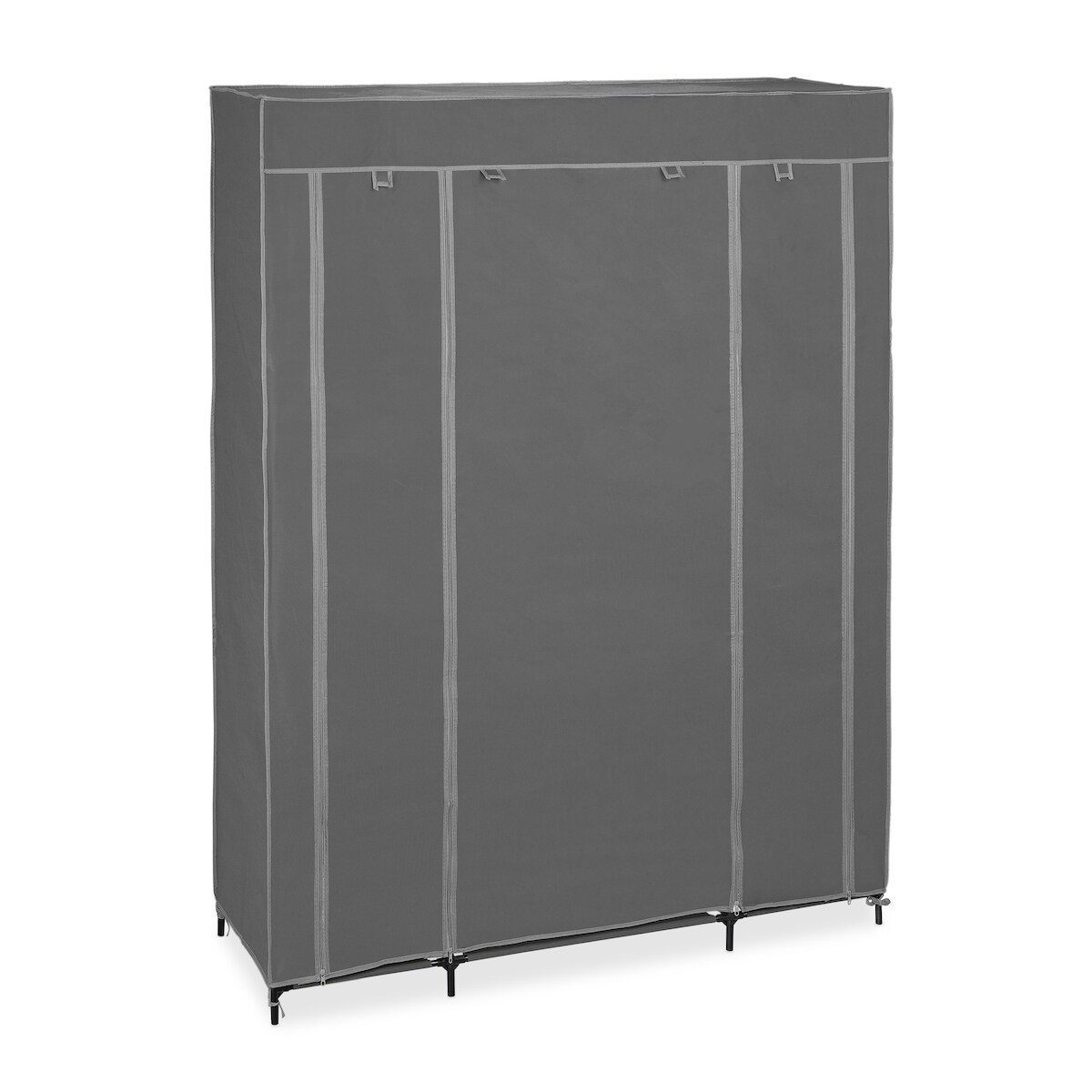 Relaxdays Stoffschrank mit Kleiderstange & 5 Ablagen, Faltschrank mit Reißverschluss, HBT: 161x105,5x45cm, anthrazit