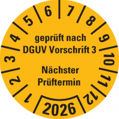 Dreifke® Prüfplakette Nächster Prüftermin,27-32,gelb,Folie,ablösbar,Ø 15mm,1000/Rolle
