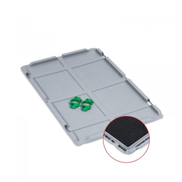 PROREGAL 10x Scharnierdeckel Set Eurobox NextGen mit Schaumstoff und 2 grüne Schiebeschnappverschlüssef | BxT 40x60cm | Eurobehälter