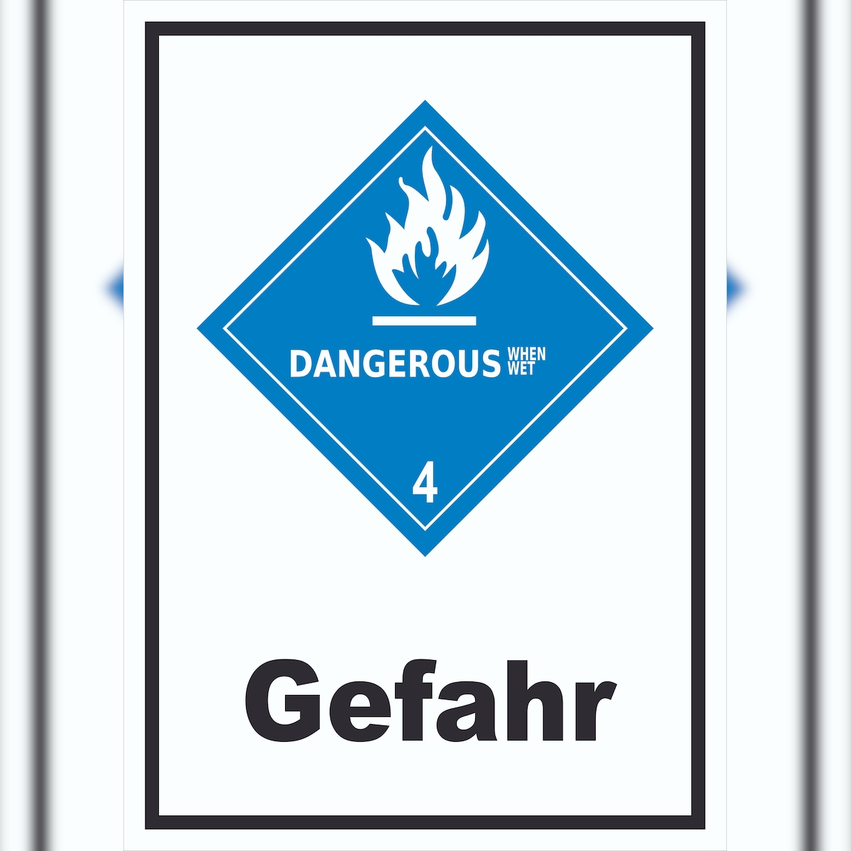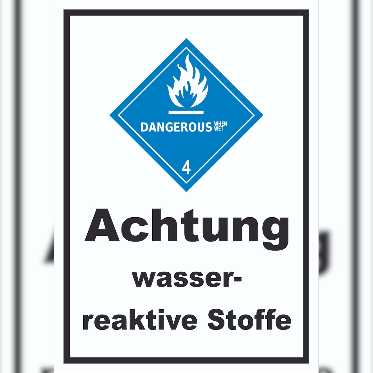 HB-Druck Schild wasserreaktive Stoffe Gefahr Dangerous when wet hochkant