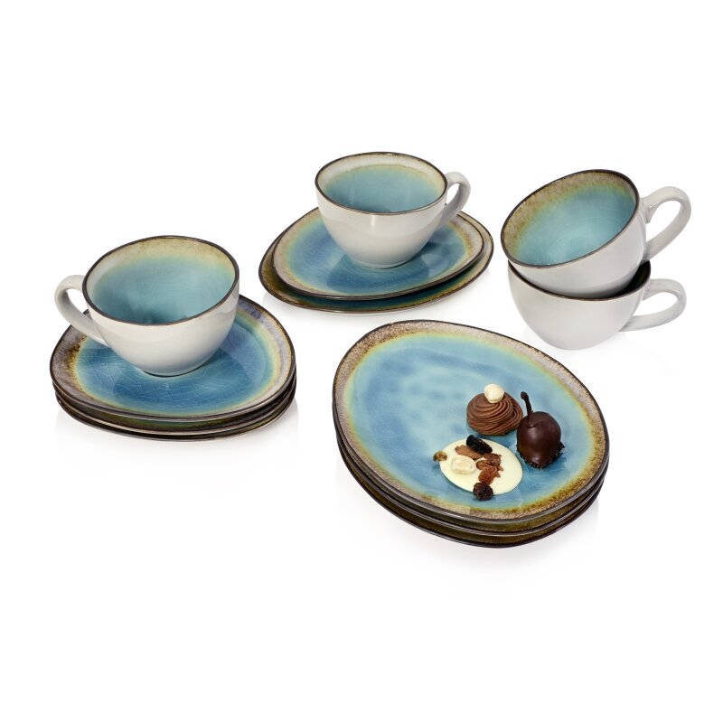 SÄNGER Steingut Geschirrset Santorini, Tafelservice 12 teilig für 4 Personen