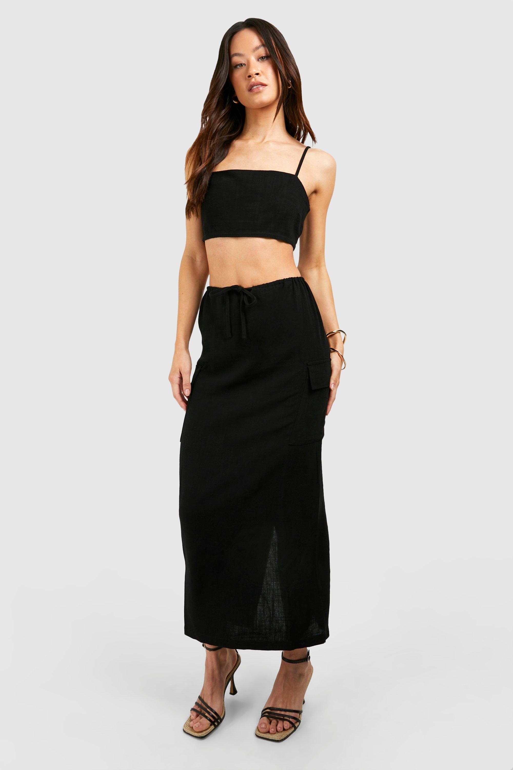 Boohoo Womens Tall Linen Look Pocket Midaxi Skirt - Black - Size 14 UK | Boohoo Sale | Discount Designer Brands