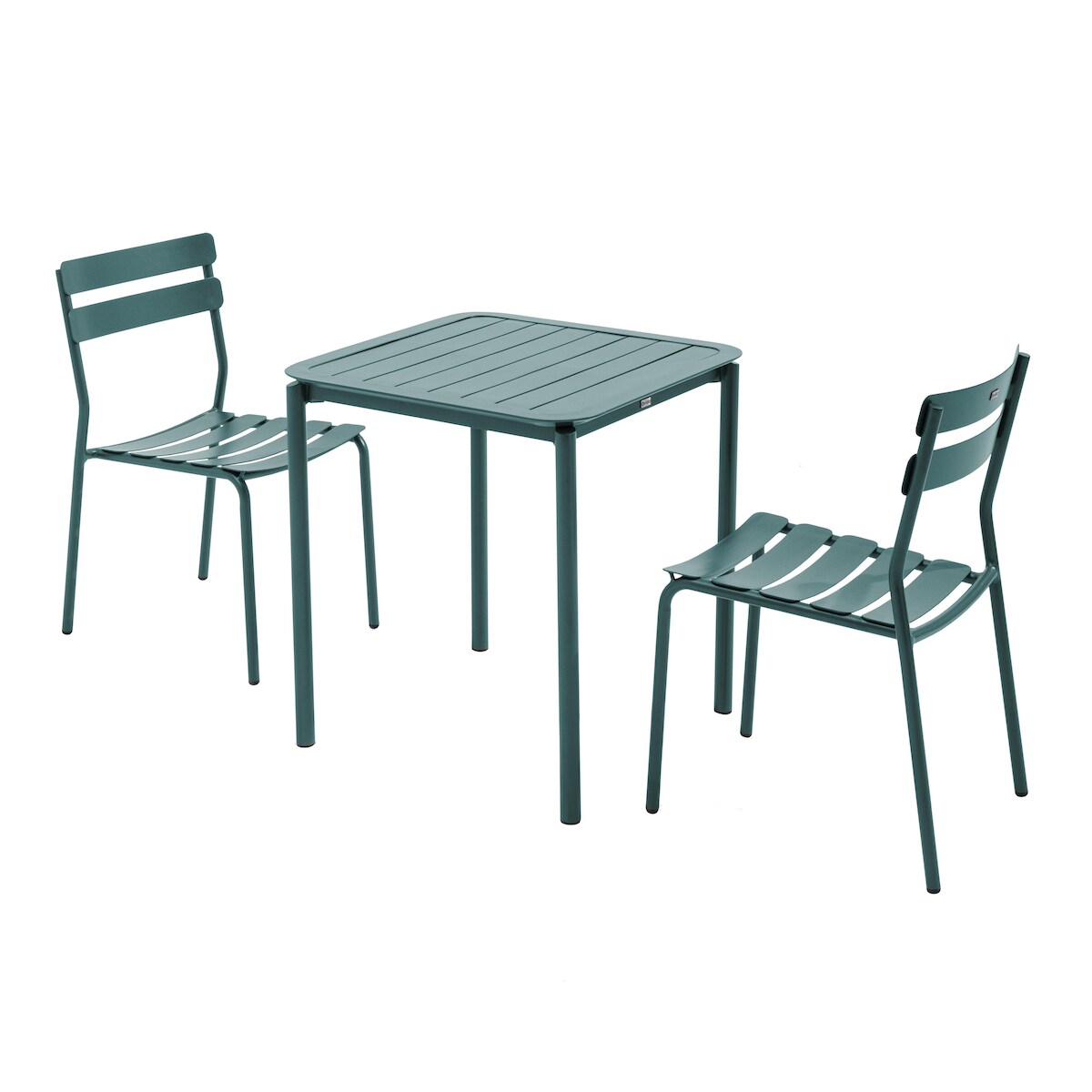 Oviala Business Quadratischer Terrassentisch (70 x 70cm) und 2 Stühle dunkelgrün