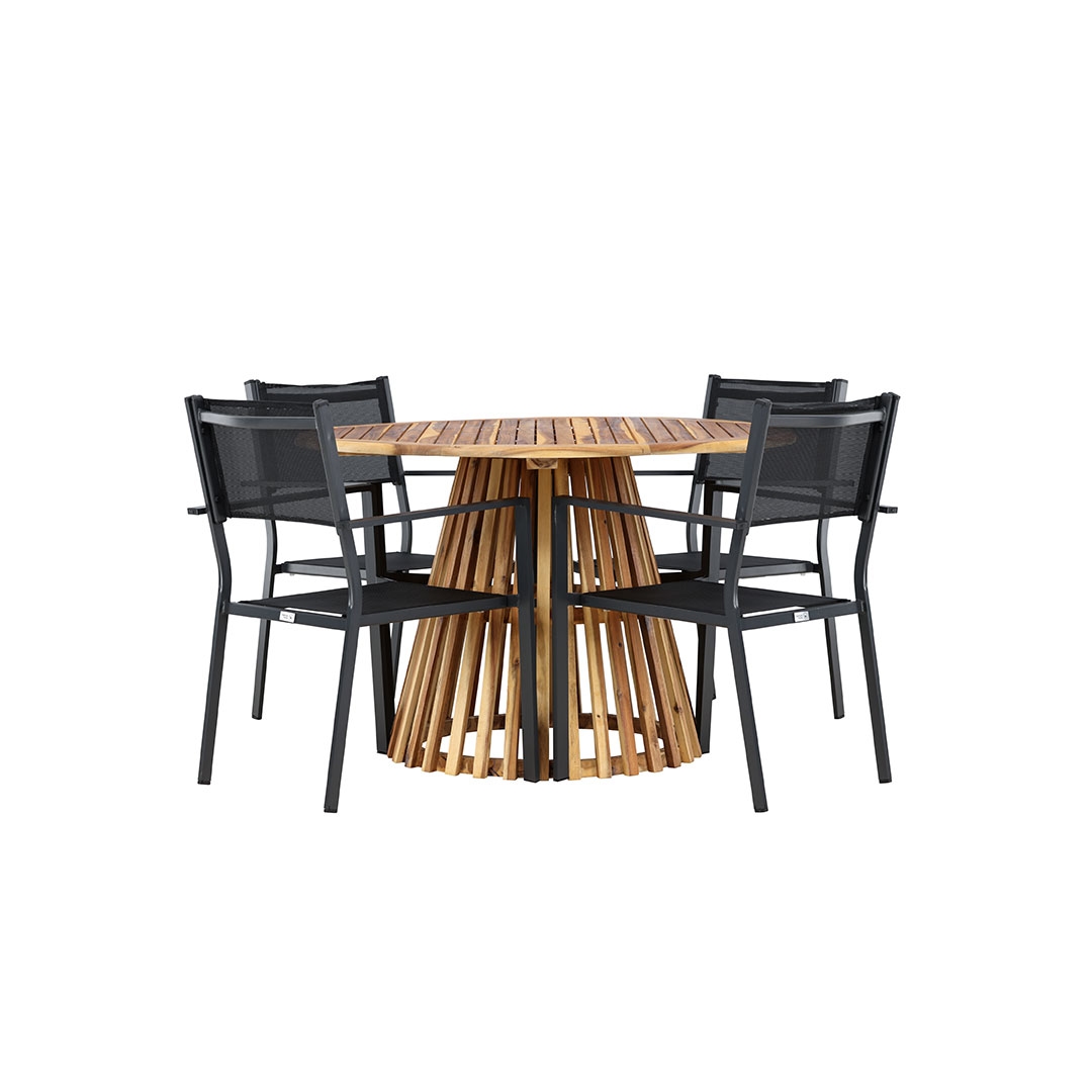 Ebuy24 Lumpur Gartenset Tisch Ø120cm natur, 4 Stühle schwarz.