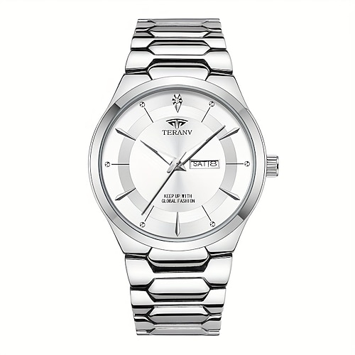 Orologio al quarzo da uomo – stile aziendale elegante lancette luminose impermeabile IPX7 doppio calendario con data e display del giorno cinturino in lega regalo di San Valentino alla moda per