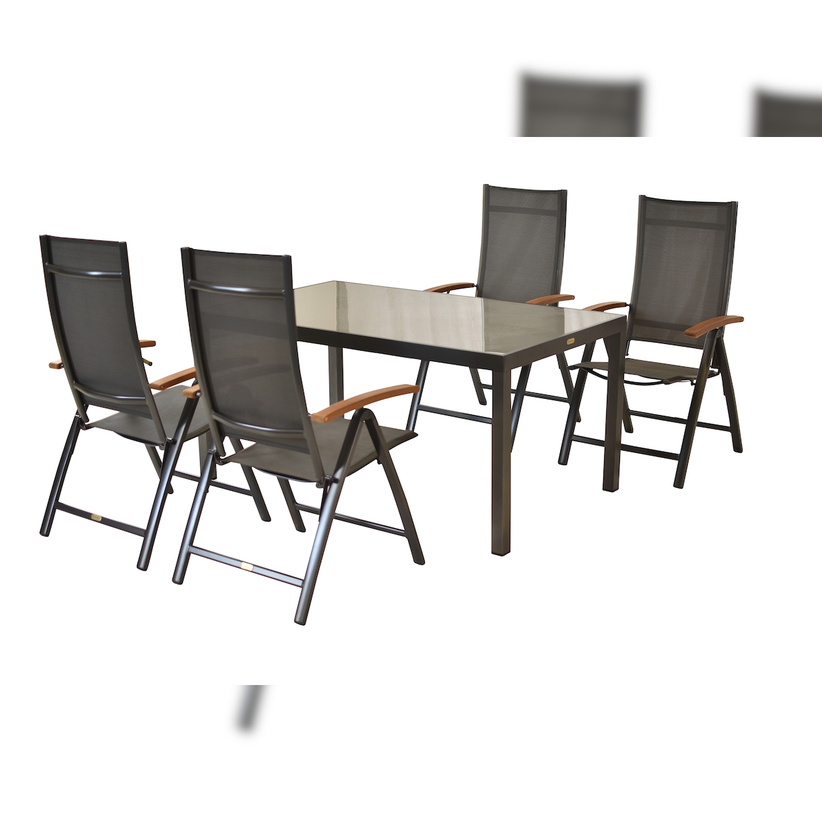 Merxx Toblino Set 5tlg., 4 Klappsessel, 1 Tisch 150 x 90 cm, Aluminium