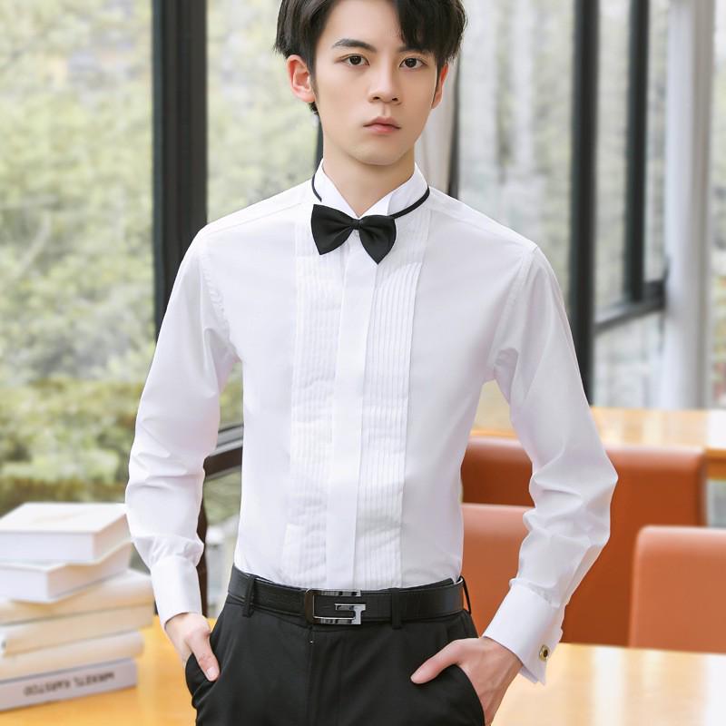 Men's Swallowtail Collar Tuxedo Shirt - French Style Emcee Groomsman Wedding Costume, Plus Size White Shirt cm black