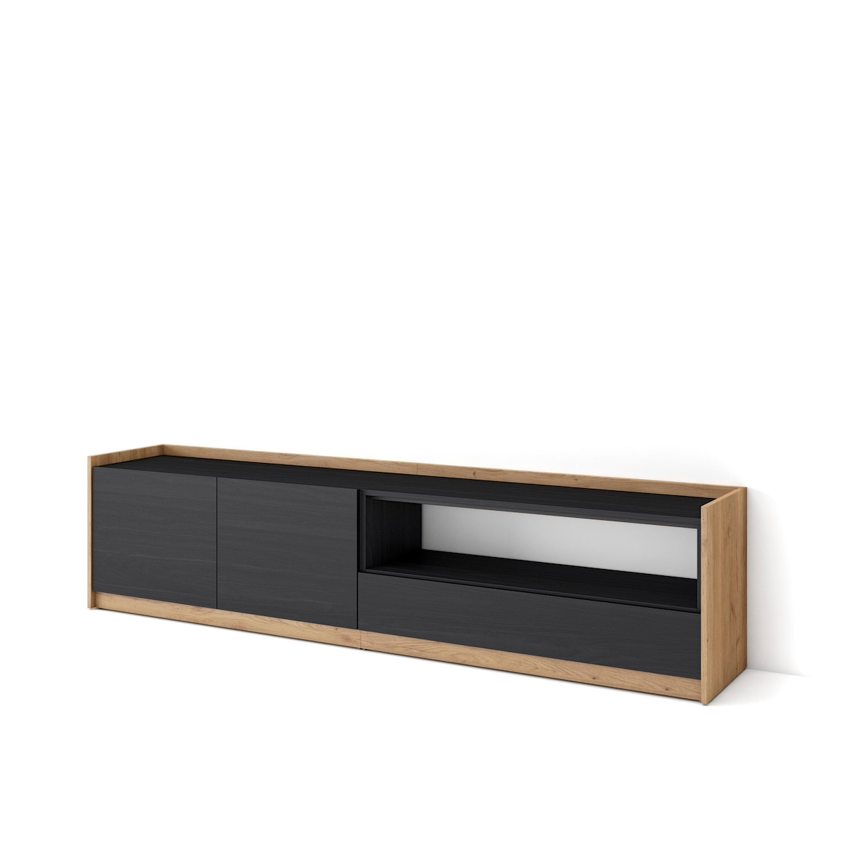 SKRAUT HOME TV-Schrank, Lowboard, 207x37x50cm, Für TV-Geräte bis zu 80", Fernsehtisch, Eiche Schwarz674_1