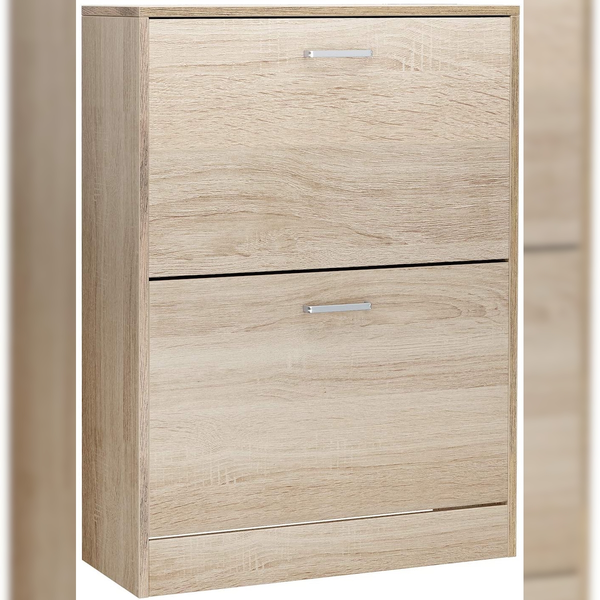 UAC Schuhschrank 60 x 24 x 83,5 cm, mit 2 Klappen, Schuhkipper, Schuhregal mit 3 Ebenen, Trennwände verstellbar, Schuhkommode, Eichen-Optik