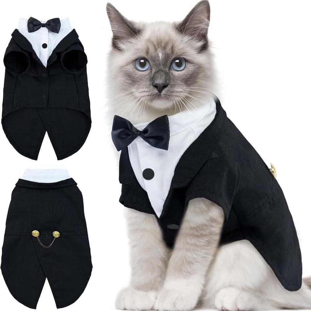 Koszula Kot Kamizelka Ubrania Kot Urodziny Frak Ubrania Formalny Strój Suknia Ślubna z Krawatem Ślub Urodziny Kamizelka Kot Kokarda Krawat czarny