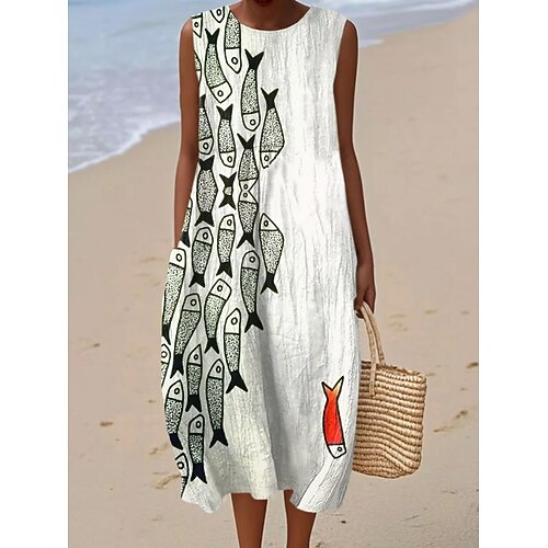 Per donna Abito Midi Vestito Estivo Abito a Tubino Abito a trapezio Vacanza Casual Boho Spiaggia Uscire Vestibilità comoda Grafico Animale Senza Maniche Girocollo Blu Nero Azzurro cielo Blu scuro