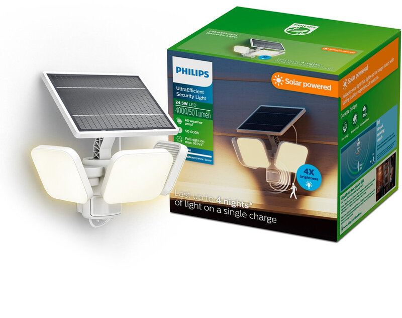 Philips UltraEfficient Zyren Wandlamp - Solar Beveiligingslamp - Bewegingssensor - Helder wit licht: 3000K - 24,5W - Wit - Twee lichtstanden - Schemersensor - Zonne-energie - Waterbestendig