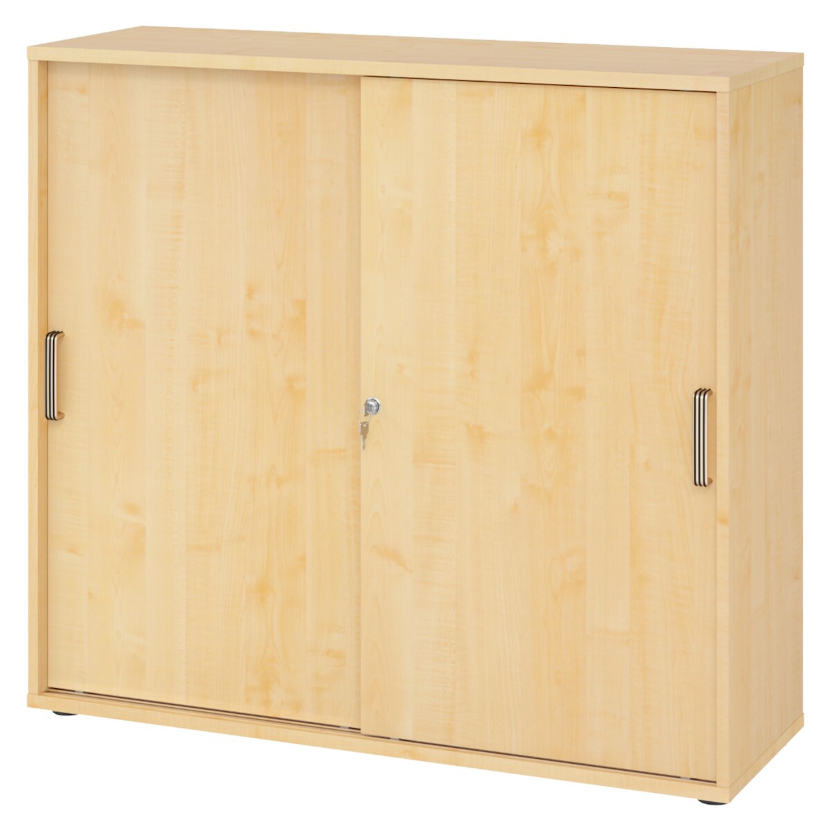 bümö Schiebetürenschrank 3OH - Aktenschrank abschließbar, Sideboard Schrank mit Schiebetüren in Ahorn, Streifengriff - Büroschrank aus Holz mit