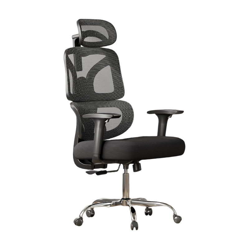 DEVAISE Office Chair, Ergonomic Office Chair with 4D Segmented Support Backrest, W-Shaped Cushion, 5D Armrests Headrest Adjustable, Mesh Chairs for Home Office, 180kg Capacity, Black