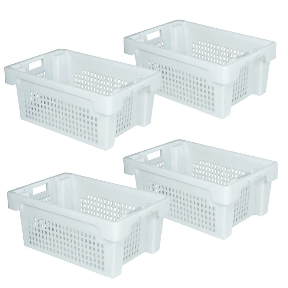 BRB 4x Drehstapelbehälter, LxBxH 600x400x250 mm, 40 Liter, weiß