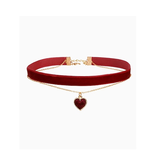 Collana girocollo da donna con ciondolo a cuore in velluto - elegante catena in oro a doppio strato con cuore rosso per feste di Natale e festività