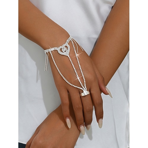 Bracciale da donna con catena a forma di cuore in strass dorati - elegante combinazione di bracciale con anello di cristallo per feste, matrimoni e occasioni serali