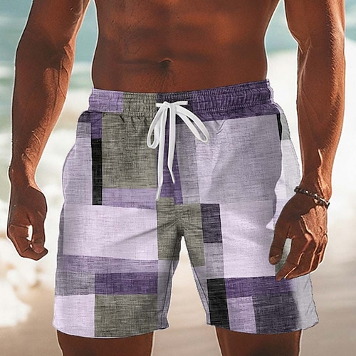 Per uomo Geometrico Blocco di colori Patchwork Costumi da bagno Pantaloncini da mare Pantaloncini da Surf Misura del girovita medio Casual All'aperto Vacanza Abbigliamento Quotidiano Tasche Laterali