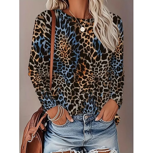 Per donna Maglietta Grafico Geometrico Astratto Vintage Moda Elegante Manica Lunga Girocollo Top Regolari Quotidiano Stampato Fucsia Marrone Estate Primavera
