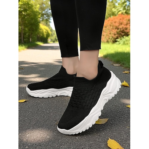 scarpe da ginnastica slip-on flyknit arancioni da donna – scarpe da passeggio leggere in mesh traspirante con suola spessa per il tempo libero e lo sport