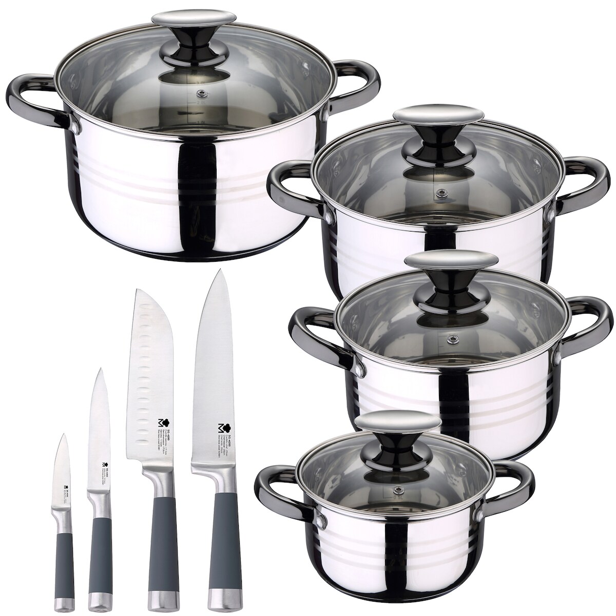 San Ignacio - 8-teiliges Kochgeschirr-Set geeignet für Hita-Induktion, Edelstahl + 4er-Set Küchenmesser