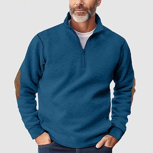 Per uomo Felpa con zip Felpa a nido d'ape Maglione Nero Blu marino Mezza zip Semplice Tasca Casuale Quotidiano Lavoro Poliestere Attivo Vintage Cool Primavera Autunno Abbigliamento Felpe con cappuccio