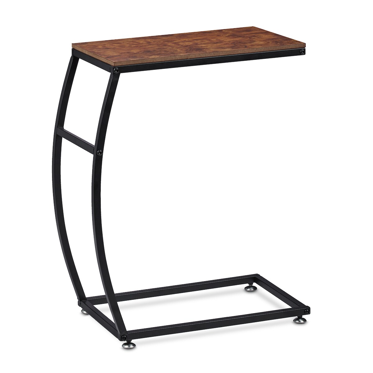 Relaxdays Beistelltisch Industrial Design, C-Form, HBT 58,5 x 47,5 x 25 cm, Tisch für Couch & Bett, Metall & MDF, braun