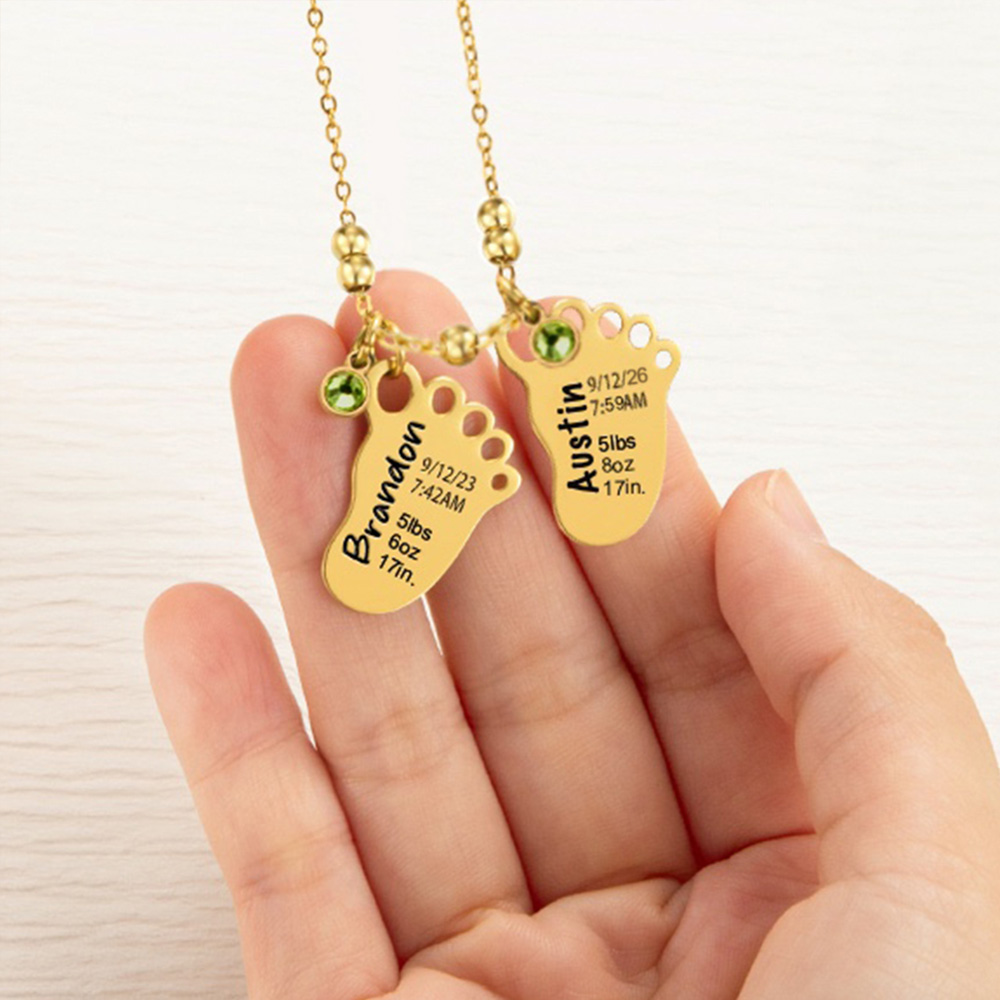 Personalizado grabado 1-3 bebé pie colgante collar con anuncio de nacimiento y piedra de cumpleaños cumpleaños Baby Shower regalo para el niño nueva mamá