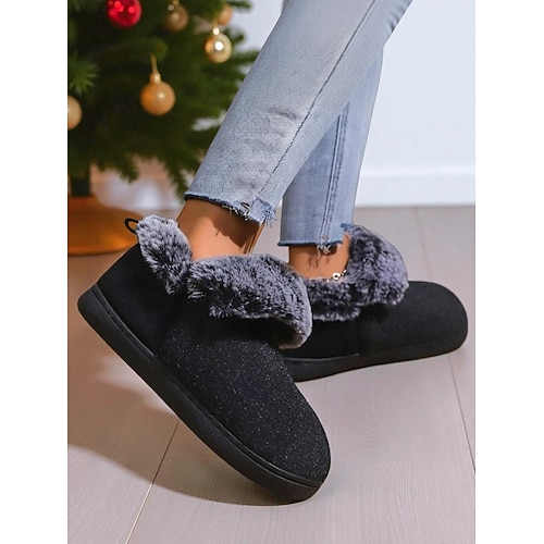 scarpe da donna in pelliccia di peluche calda per l'inverno e per il Natale - grazioso fiocco e dettaglio a campanella, ideali per il comfort in casa, per lo scambio di regali la mattina delle feste e per l'abbigliamento invernale