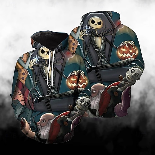 Jack Skellington Felpa con cappuccio Cartone animato Manga Manga 3D Tasca frontale Grafica Tasca a marsupio Per Da coppia Per uomo Per donna Per adulto Halloween Carnevale Mascherata Stampa 3D Casual
