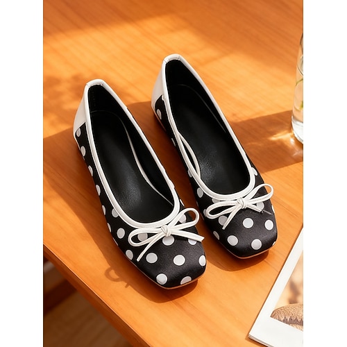 ballerine da donna a pois con fiocco – grazioso stile retrò anni '50, perfette per un abbigliamento casual, uscite quotidiane e tea party