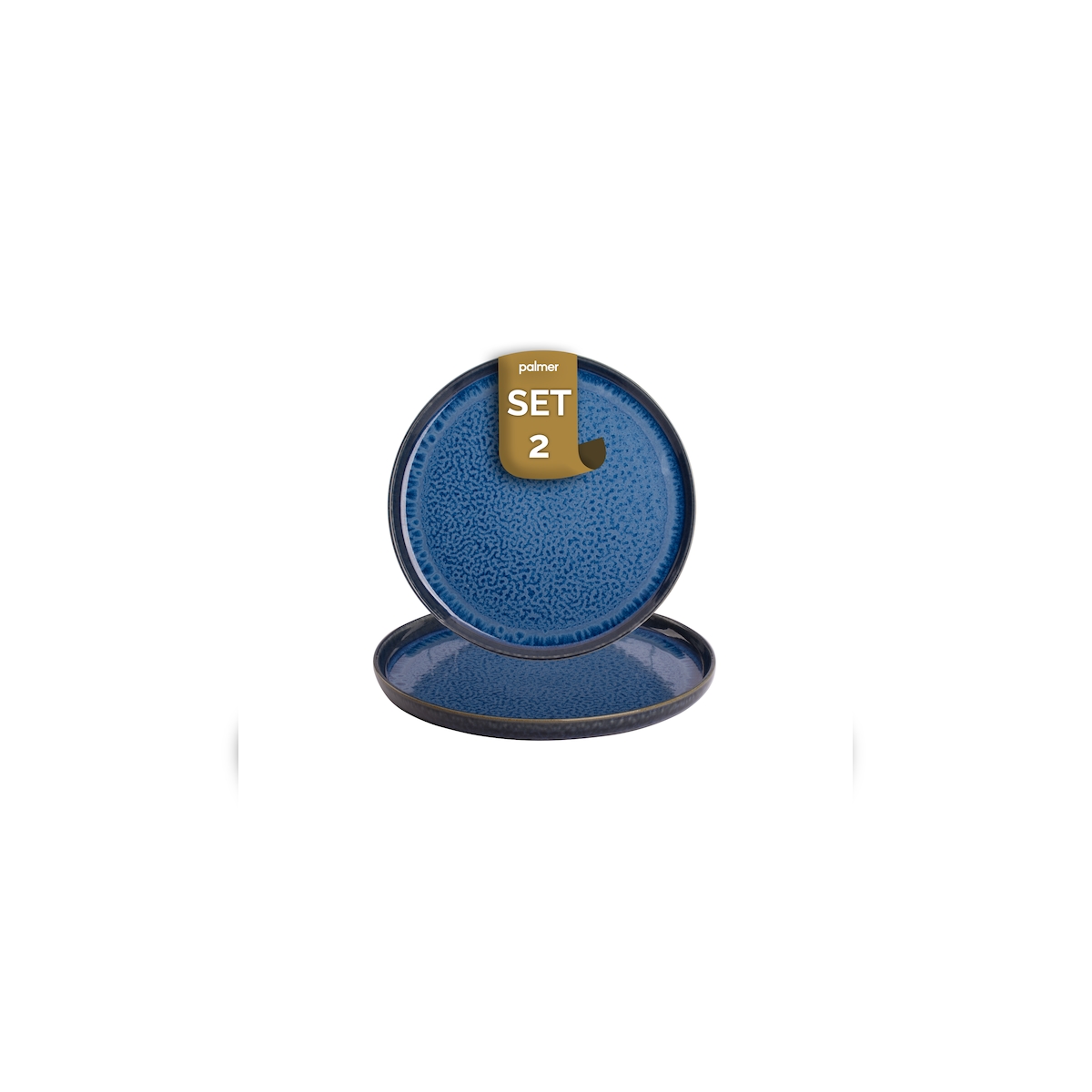 palmer Jory Teller flach - 2er-Set, Steinzeug, Ø 28 cm, blau braun, hoch glänzend, moderner Stil, für Pizza, Menü oder als Servierteller