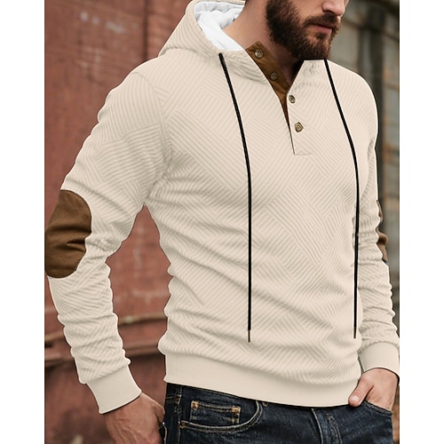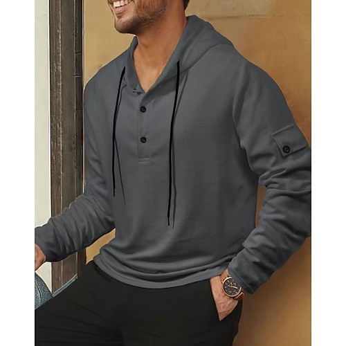 Per uomo Maglia Felpa a nido d'ape Felpa con cappuccio Maglione Felpa con cappuccio abbottonata Blu Aalbicocca Nero Bianco Rosso Colletto Mao Semplice Tasca a marsupio Testurizzato Casuale Quotidiano