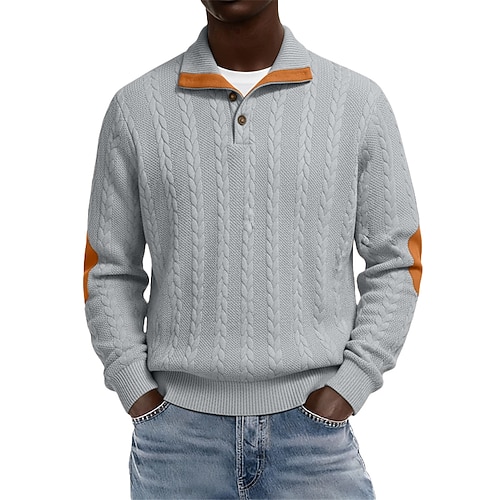 Per uomo Jacquard Maglia Felpa con cappuccio Felpa con cappuccio abbottonata Nero Blu marino Arancione Cachi Grigio chiaro Colletto Mao Semplice Patchwork Testurizzato Casuale Quotidiano Sport