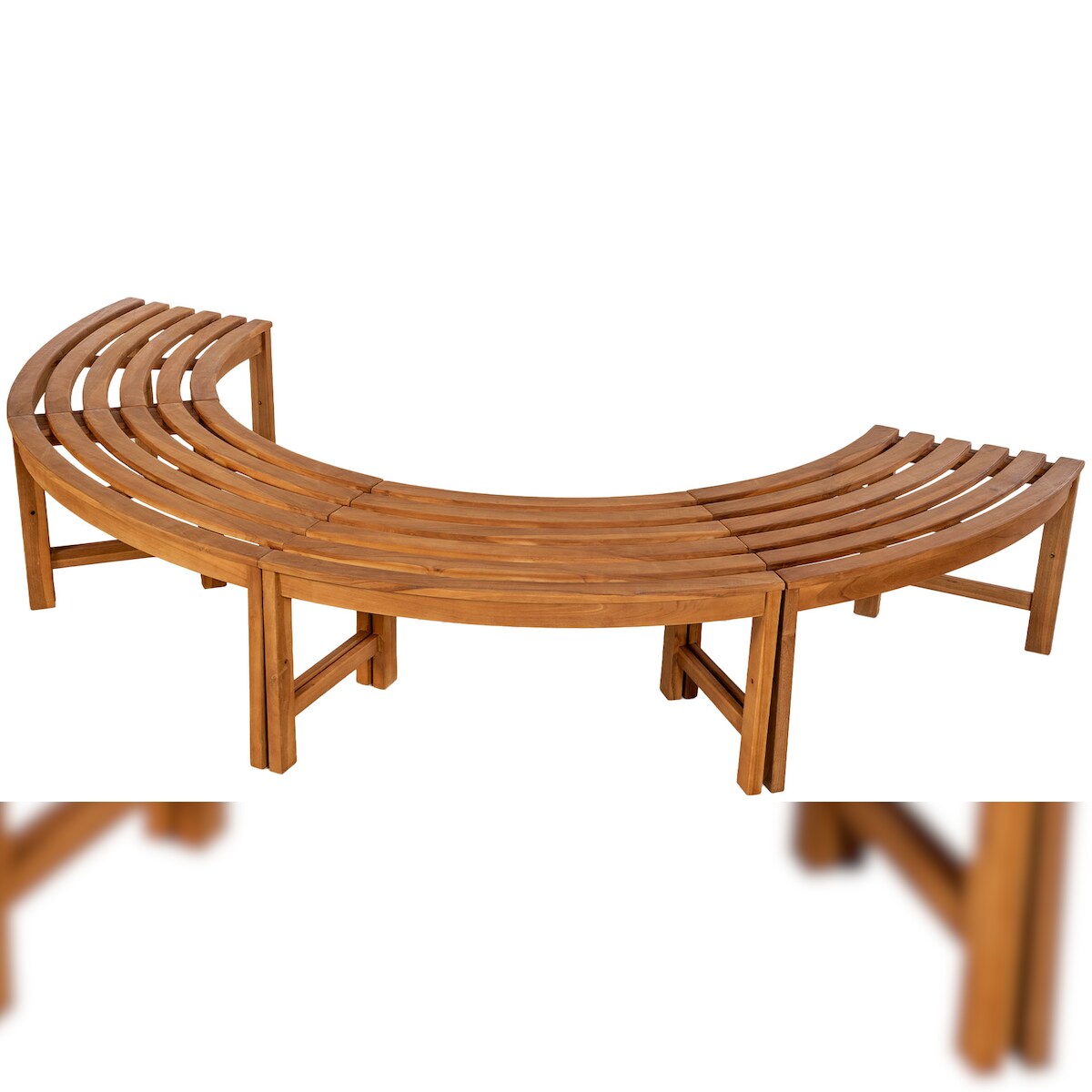 DELUKE Baumbank RISEN - Holz Teak 250x125x45 cm | Halbrunde Sitzbank Ohne Lehne Baumbank Gartenbank Für Baum